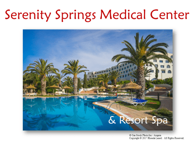 Alex Popovich started his new job at the Serenity Springs Medical Center. This hospital does double duty as a top notch medical facility and luxury spa.